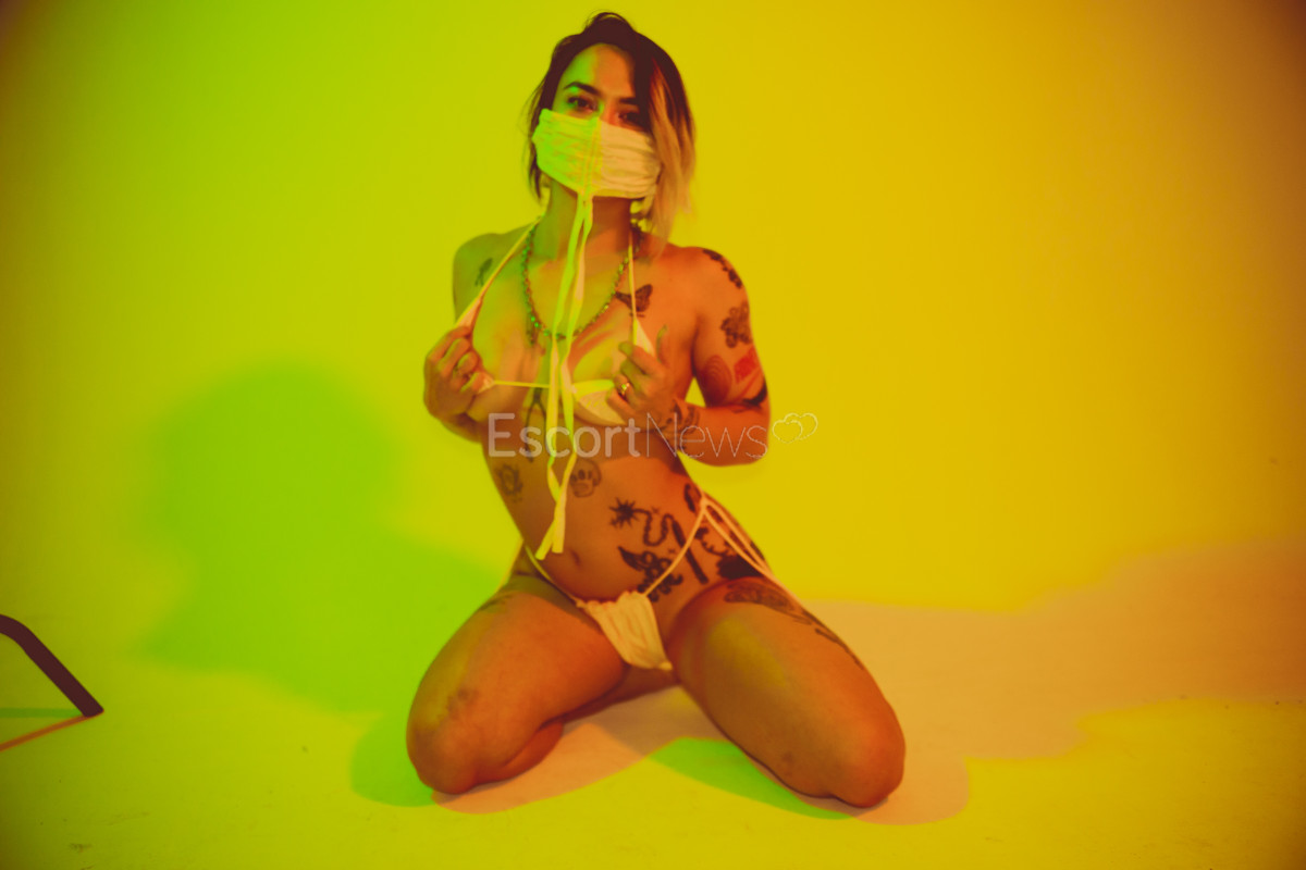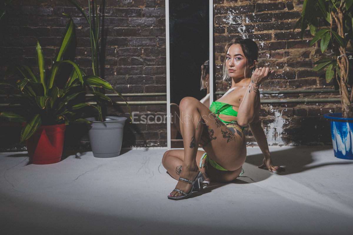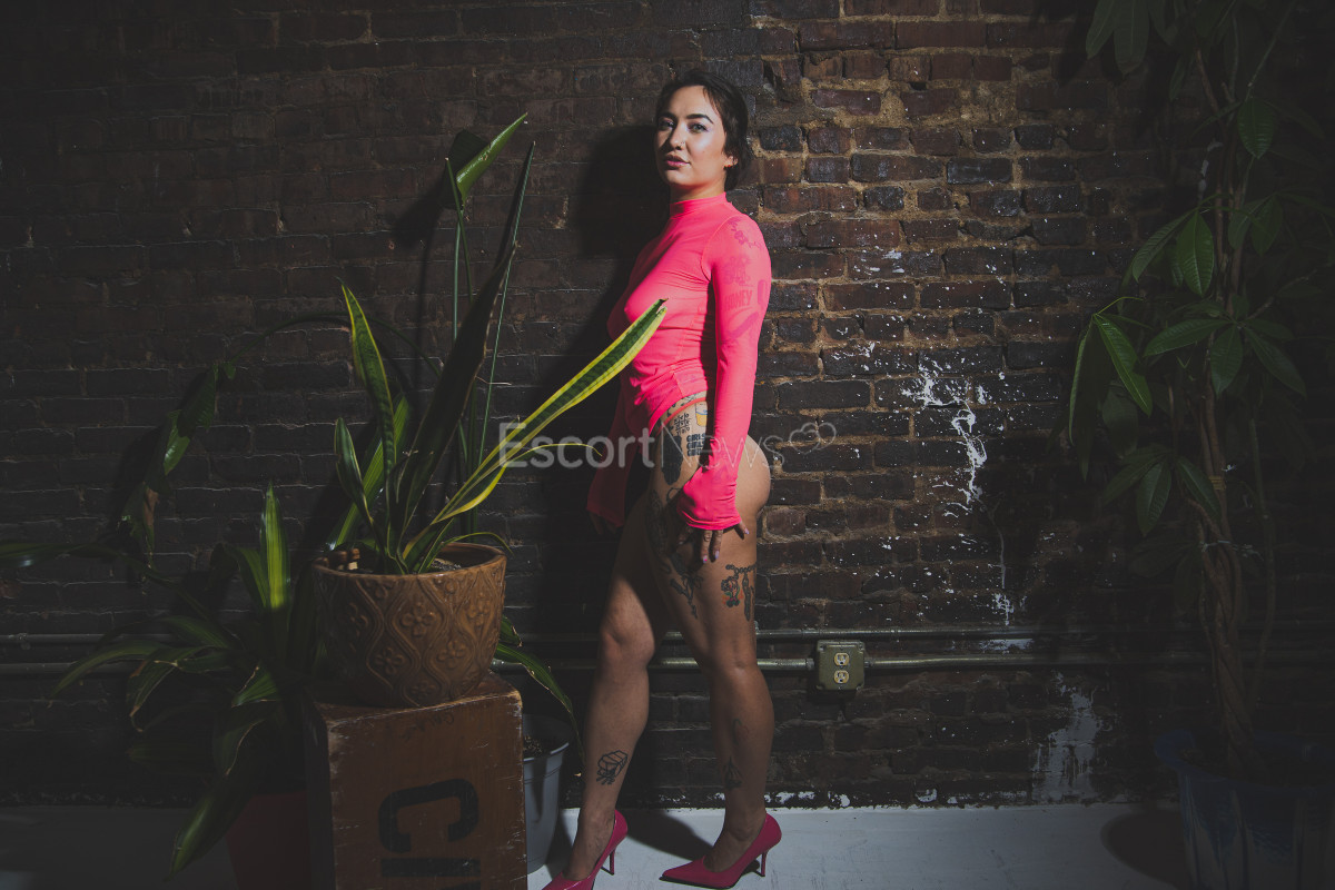 Half Asian tattooed model and gymnast